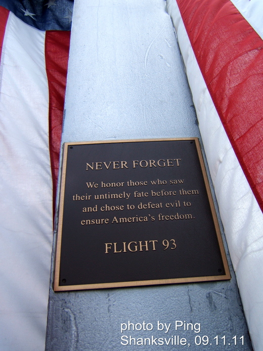 今年為紀念911十周年,三位前後總統連袂出席萬人紀念儀式。可見9月11日的重要性,可能比緬懷國殤日(Memorial Day)的心情還要沉重、複雜和迷惑。因為戰爭不再只是軍人的職責; 面對無理性的宗教狂熱份子,其瘋狂、不按牌理出牌的恐怖攻擊下,全天下人人自危!但弓杯蛇影、懷憂喪志、坐以待斃不是美國的精神,除了自求多福加強配合政府的家園保安政策外,還要省思世界和平大同的艱巨使命,更重要的是加強信心和堅持民主生活方式的價值,來重建這個偉大的國家。