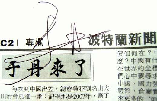 終於見到于丹了!親手交給她花鄉隨筆 ~ 「于丹來了」一文,她非常高興的合照和給予簽名留念!