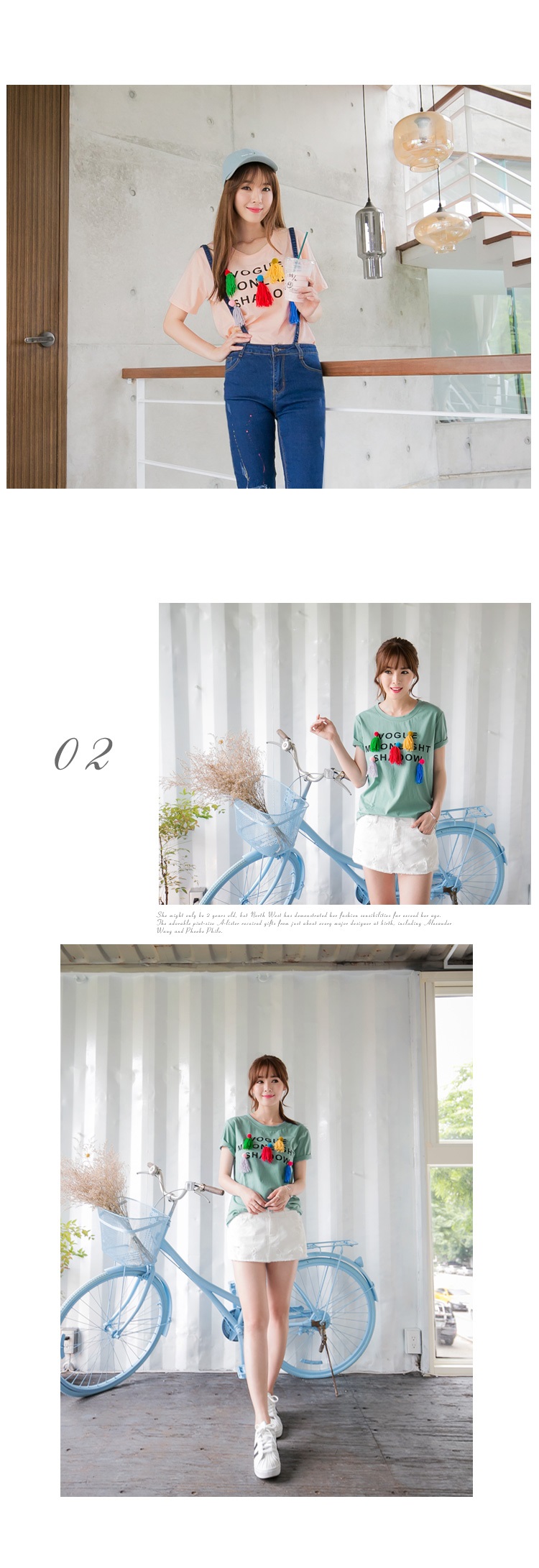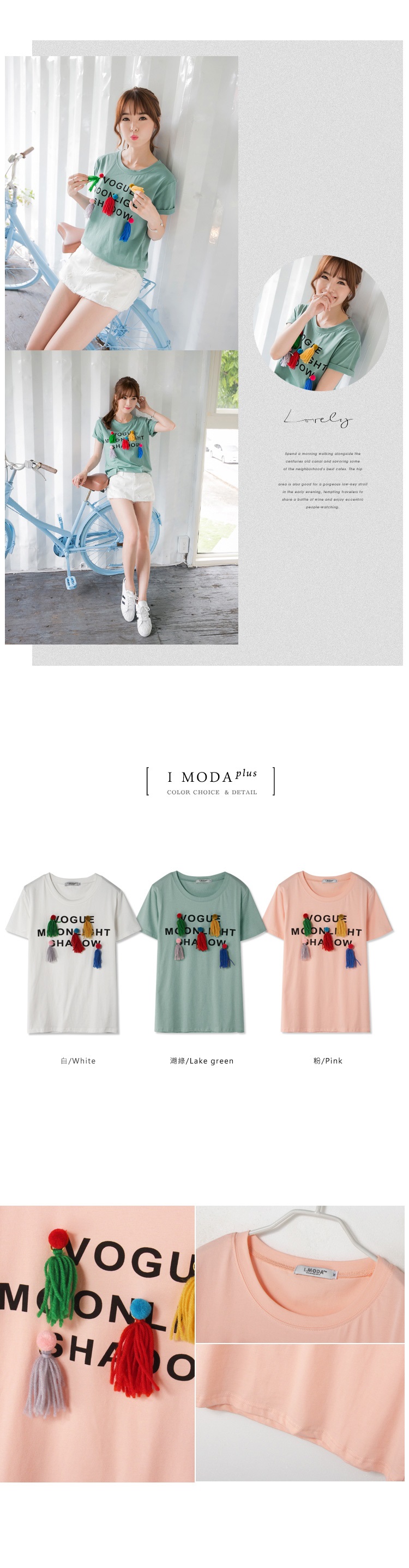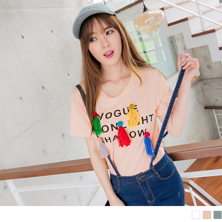 商品網址: http://www.obdesign.com.tw/product.aspx?seriesID=AA9865-&no=6964&member=af000056122 0622新品 彩色球球流蘇字母印花彈性柔軟圓領T?.3色 並建議第一次穿著前請先下水洗滌,以避免染色問題唷~