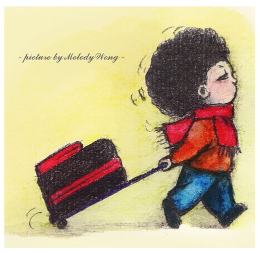 拖著與他身高不相上下的旅行箱...