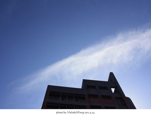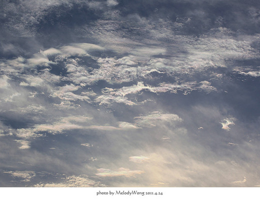 彩色的雲...是直到我將照片輸到電腦後才發現的...這奢華的禮物....讓我到現在依然滿是喜悅!當我看到排骨狀的雲還有彩雲....會不會是地震雲....心理不自覺閃過這念頭....沒想到過了一個禮拜北部還真的發生地震....