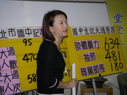 北市國中記大過是要挑戰「金氏世界記錄」嗎?!新黨臺北市議會黨團議員王鴻薇、侯冠群、潘懷宗8日一致表示,北市記大過最高紀錄保持人已達8大過!更有學校1學年記大過者就高達52人!而近3年國民中學記大過人數逐年增加,多是因「肢體暴力」、「抽菸」、「辱罵師長」,這已顯示北市「校園霸凌」情況嚴重!「尊師重道」蕩然無存!真的是記大過學生不甩?學校沒輒?