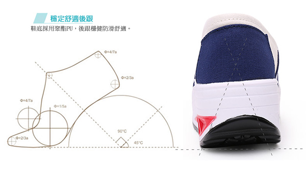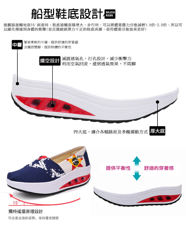 ●以健康步伐為考量,特殊製作船型搖擺鞋底