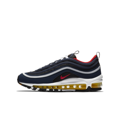 Nike Air Max 97 大童鞋款從高速列車的外型汲取靈感,無論在跑道上或學校裡,都能帶來輕量支撐與靈敏緩震性能。
