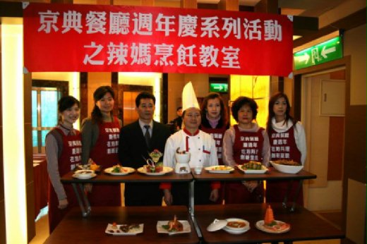 另外,京典餐廳週年慶期間不但優惠用餐的貴賓,更邀請婆婆媽媽們一同和名廚習藝,特別在每週一、四的下午2點半至4點半;週日下午5點半至晚上7點半舉辦辣媽烹飪教室,免學費喔!授與婆婆媽媽們宴客秘密檔案,讓您在家也可以輕鬆宴客,保証親友一片譁然…..。