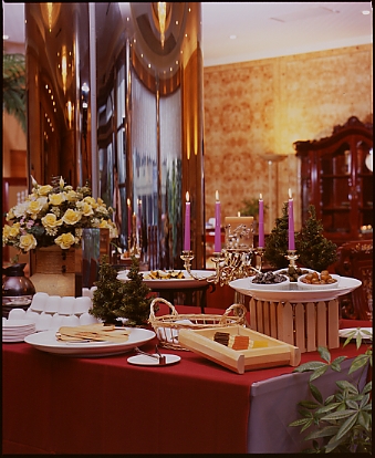 富翔的迎賓午茶是飯店的一大特色,陳振宜副總表示,富翔的迎賓午茶是源自於舊時台灣的“奉茶”文化,早在幾年前、富翔就以親切如鄰家的服務態度推出“奉茶”服務,只要您坐上大廳吧的任何一個位子,親切的服務員隨即奉上一杯香濃的“金棗蜜茶”,而且是免費的。推出之際頗受好評、但由於富翔的賓客皆是紳仕淑女,不好意思接受“免費”的服務、卻又忍不住好喝的“金棗蜜茶”,一下子就乾杯了,我們的服務員一見杯子見底了、馬上又添滿,於是賓客們就不好意思地起來走動了。
