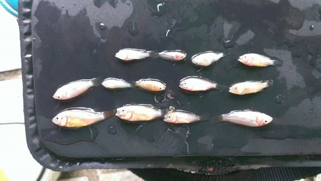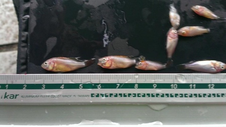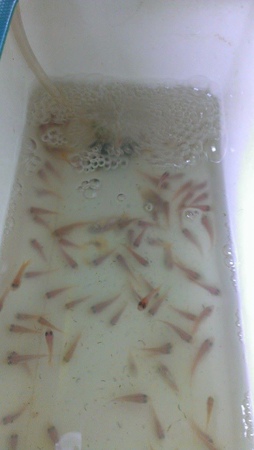 我們大約拿了120條的魚苗回來, 大小約為1.5~2.5cm的吋苗, 趕回農場後有幾尾沒有挺過來, 可能是稍為缺氧或體質比較弱一點。