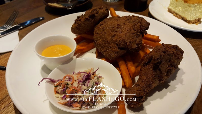 这里的咖啡和甜品价格与一般的咖啡馆不相上下,当天我点了一份 Piccolo Latte,咖啡的味道虽然没让我有多大的惊喜,可是尚算不错,而蛋糕也还蛮合我的口味,唯一让我觉得不值的是 RM28.00 的 Buttermilk Fry Chicken,三块炸得过头的鸡肉,肉质的水份都全失,确实让我有点无奈。鸡肉块炸得那么干,而且酱料却提供得那么少,如果要多添加还需要额外付上 RM2.00,这一点我真的无法接受,就因为这一个失败的例子,我想我不会再因为这里的食物而再次光临。
