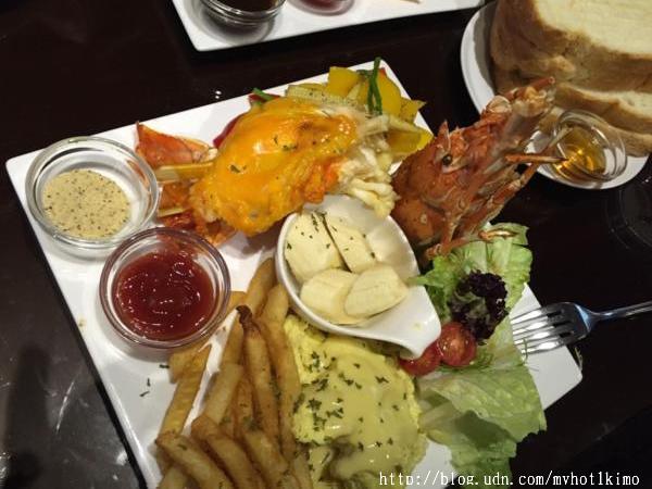 雖然已知有龍蝦,但送到面前感覺就是不一樣啊!原來龍蝦肉質這麼Q彈鮮美跟喜宴吃到的完全不同FU耶!果真是海霸!在早午餐店吃到龍蝦,真的太酷了啦!其實個人不太喜歡吃沙拉,但Birkin Waffle café 的沙拉,搭配芝麻醬吃起來不錯吃喔!