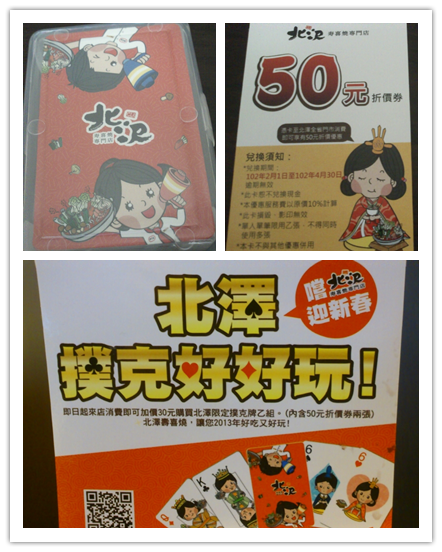 北澤現在有買撲克牌($30)送2張50元折價券,蠻划算的!可以用到四月底。