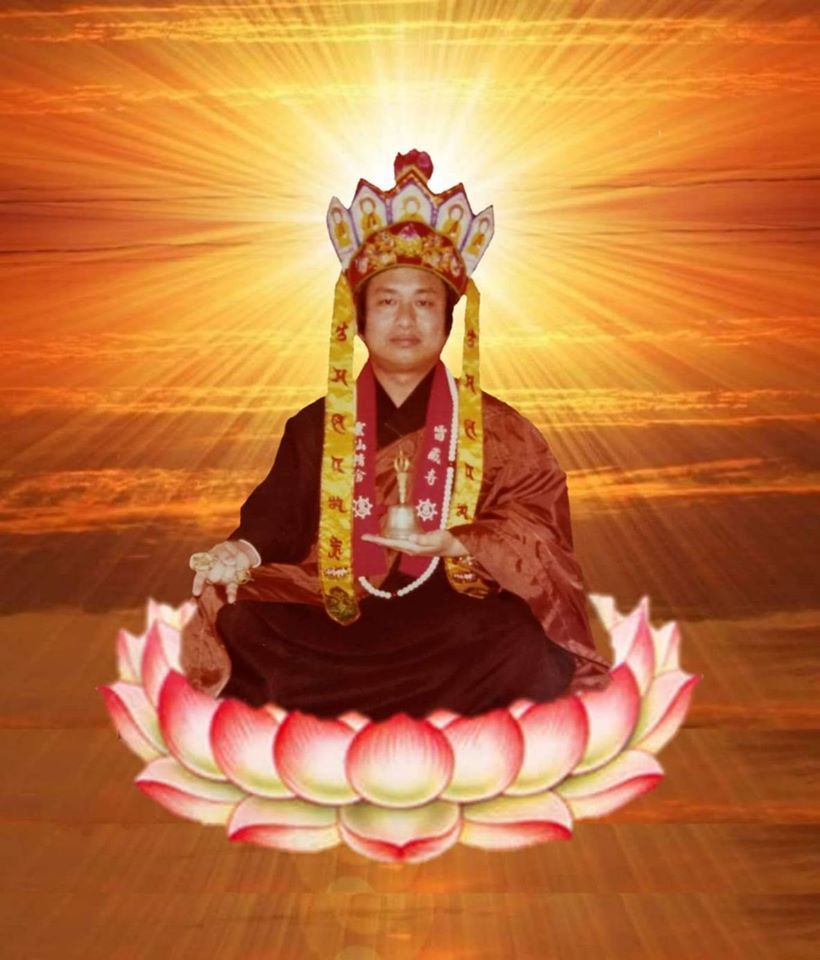 答:「蓮生活佛的人間上師共有五位,藏密的紅教、黃教、白教、花教的傳承均具備之。但最直接的傳承,得蓮華生大士的尊傳密法!