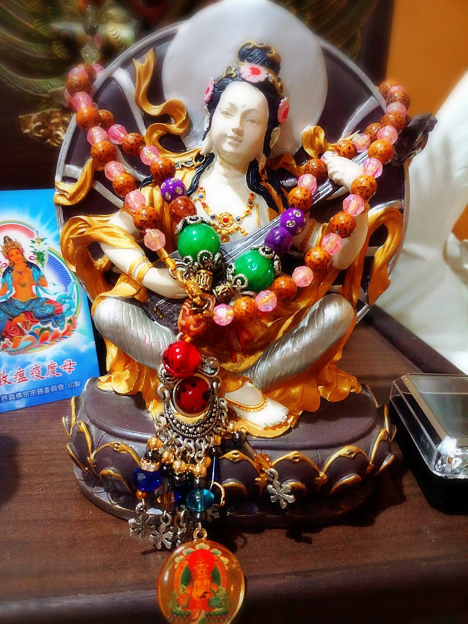「辯才天女」非常有學問、有智慧的。所謂「辯才」,就是從祂講出來的話,都是很有學問的,可以震攝十方。所以祂是一個很有智慧的天女,祂可以賜給人智慧。