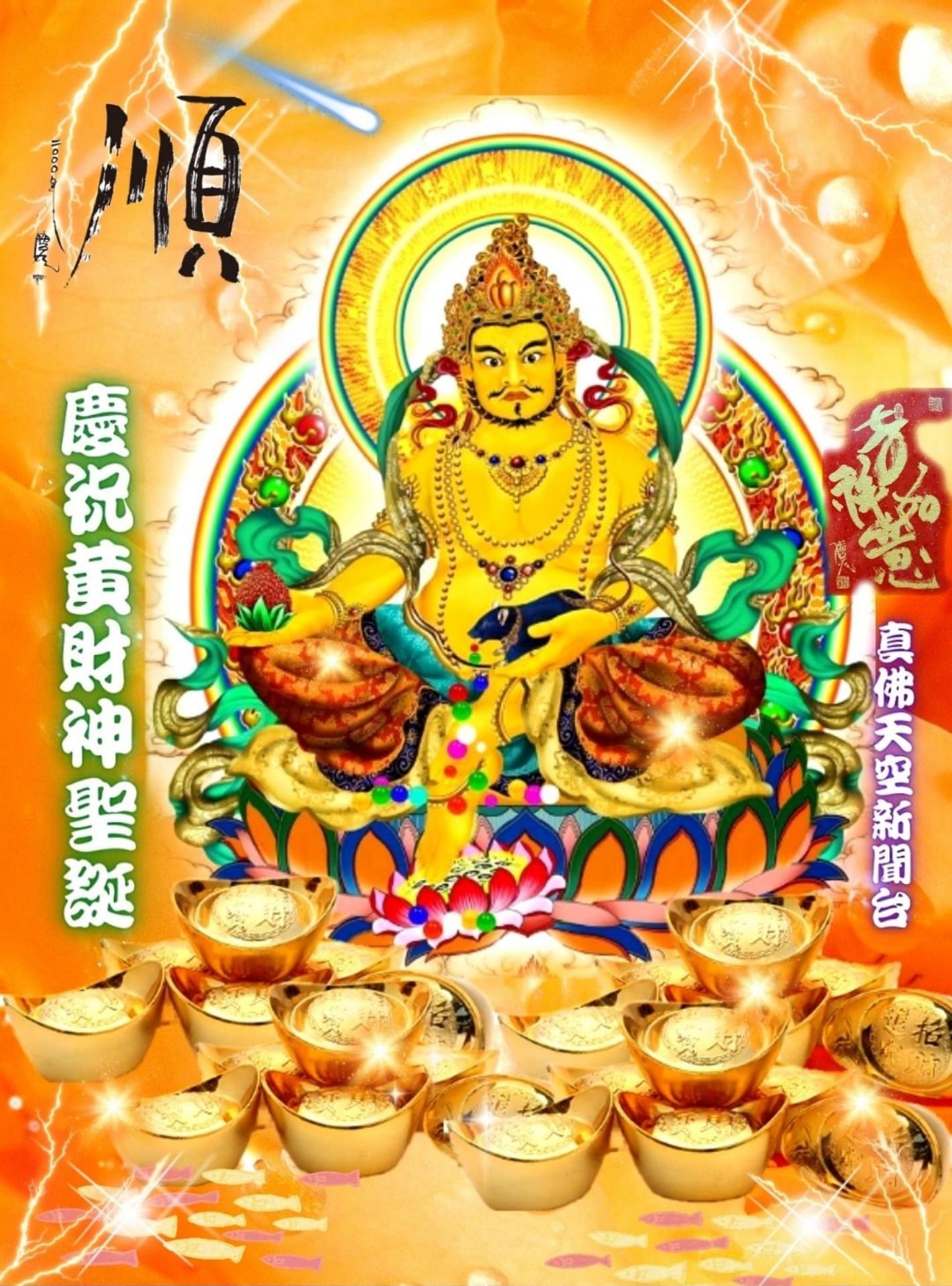 黃財神,祂本身的弘願,你知道的,祂是財神,因為祂賜給眾生福氣,就是因為衪是財神。那祂的竅在那裏?就是在祂的大拇趾上,一定要五佛放光照祂的大拇趾,使祂的大拇趾消腫,得到安樂,祂就可以施財給你。這是黃財神,消祂的身上的痛苦,祂痛苦一減輕,祂馬上施財!