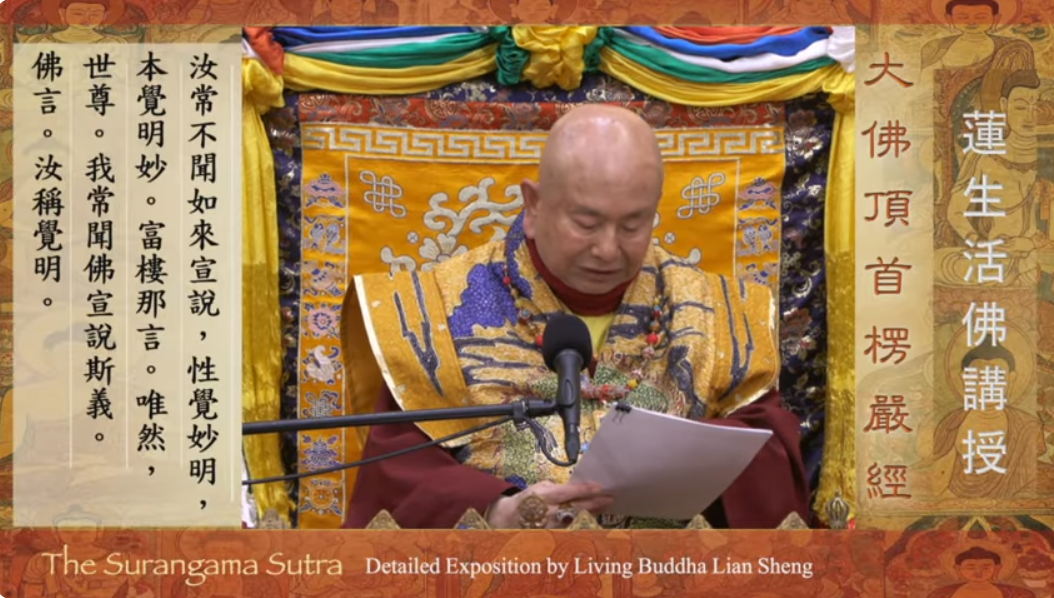 2025年12月20日(星期六)聖尊蓮生活佛盧勝彥於西雅圖雷藏寺主持「準提佛母本尊法同修」,並開講《大佛頂首楞嚴經》。