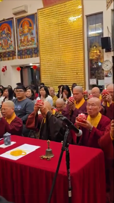 2026年2月14日(星期六)長老釋蓮滿上師主持「大白蓮花童子本尊法同修」及帶領出家眾為師尊點燈,共同迴向根本上師蓮生活佛佛體安康、一切吉祥、法體常住。