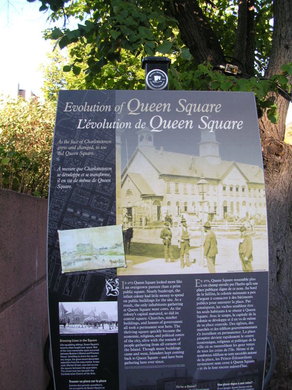 Charlottetown是Prince Edward Island愛德華王子島 的省會.1534年法國人 Jacques Cartier 發現此島取名 Île Saint-Jean.打了七年戰爭後,1763年英國人取得此島,換名St. John Island.後有一名Samuel Holland先生 測量此島時,他就建議省會訂為Charlottetown.並以英皇喬治三世的老婆Charlotte 為名.現在有34,000居民.(Guide to Charlottetown, tourismcharlottetown.ca).