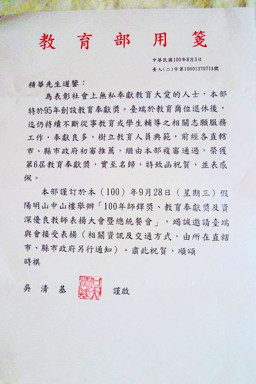 恭賀〝潘精華老師〞榮獲第6屆教育奉獻獎02