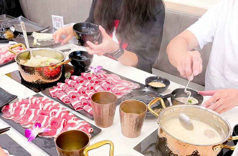 一進門就能感受到「涮金鍋」的溫馨氛圍,讓人忍不住期待接下來的美食之旅。首先,我們選擇了日式牛奶雞湯鍋,湯底奶香濃厚,滑順的口感讓每一口都像是在享受一場味蕾的饗宴。想挑戰味覺刺激的話,麻辣牛奶雞湯鍋也是不錯的選擇,香辛勁辣的味道與香滑的牛奶完美結合,令人食指大動。