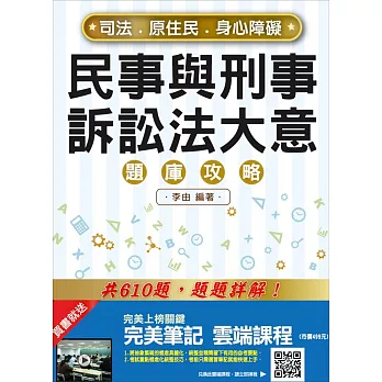 【全新改版】民事與刑事訴訟法大意題庫攻略(司法、原住民、身心障礙特考五等適用)(贈完美筆記雲端課程)(二版)![]() | 【最詳盡試題解析】2019全新初考五等「歷屆題庫完全攻略」:人事行政大意〈全書修訂解析對應修法〉![]() | 國文(作文及公文)寫作速成完全攻略(寫作要領逐步引導,作文公文範例教學)(4版)![]() | 小額信貸比較 |