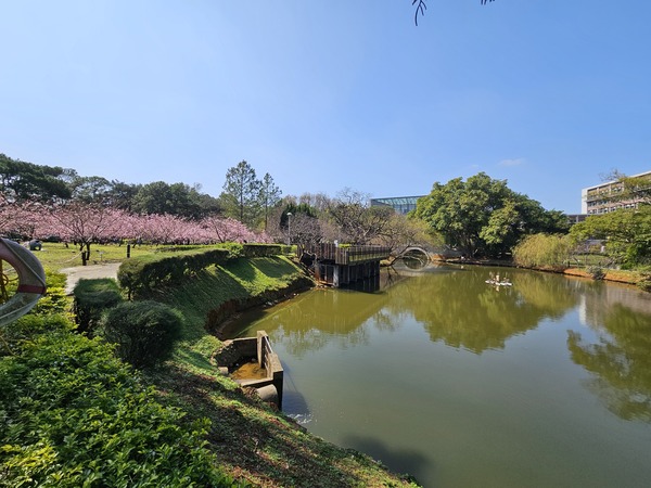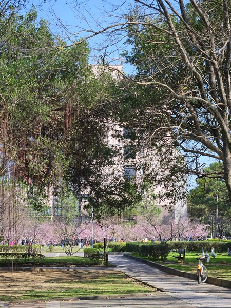 中大池旁的櫻花林