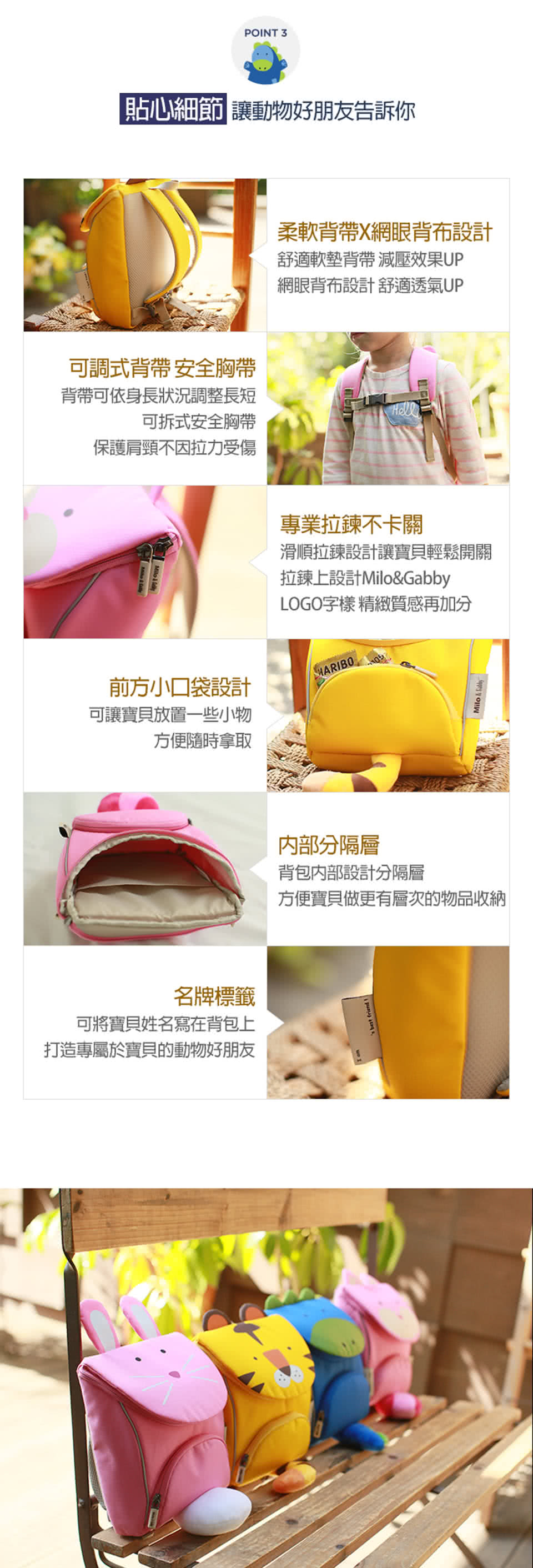 【美國Milo & Gabby】動物好朋友-超吸睛輕量型小童書包(3款可選)還有哪些類似商品哪裡買比較便宜