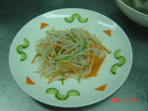 圖二 三絲涼拌豆芽(我們組的辣椒絲還是我最後拯救回來才加上去的...)
