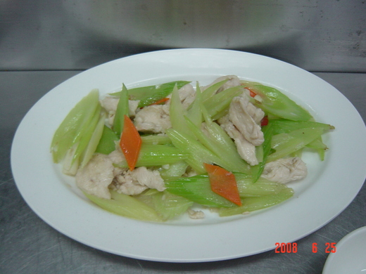 圖一西芹炒雞片(厚~今天的刀工讓我切了好久喔~)