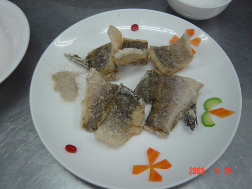 圖二椒鹽鱸魚塊(魚好難切開><~)