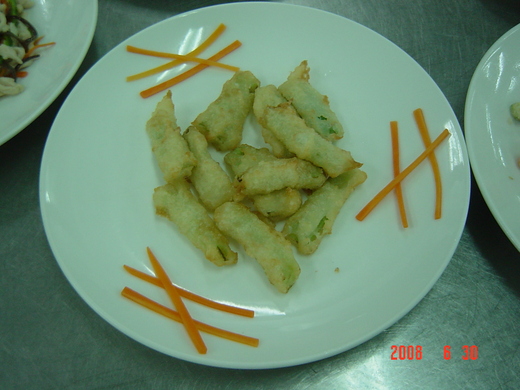 雖然不幸的抽到了早上的應試時間,還是張籤王~但是在老師的友情協助下幫我調麵糊,同學的熱情與我討論,總歸是在慌慌張張又肚痛腹絞下的把全部菜餚做了出來,而且居然還成為早上考試四組中最高分~感謝老師,感謝組員,感謝捧場的同學們~