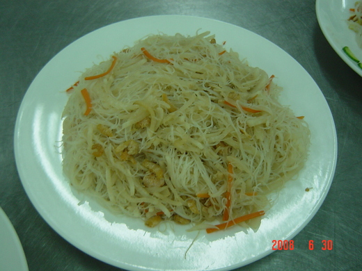 圖3蘿蔔絲蝦米炒米粉(雖然在很慌張下,沒有加入蔥花與胡椒鹽,但是調味上倒是很受大家的歡迎~再次感謝同學們熱情捧場~)