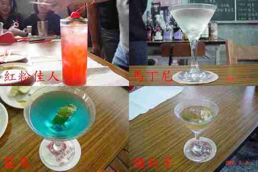 這次調酒班的同學一樣都挺和善的,班長是個很古道熱腸的人,愛喝酒的學藝則是個很瘋狂的爸爸,還有個快生產的媽媽(所以寶寶也算是我們的同學了~),巧的是班上還有個同學是跟我同個社區呢!世界還真是無奇不有。不過,最巧的應該是我人面廣的媽媽了,上課場地的學校女老師(也懷孕^^-大家都懷孕了嗎?)是以前媽媽有在聊天的鄰居女兒,而懷孕的媽媽同學,我親愛的媽媽還熟遍他們一家呢!
