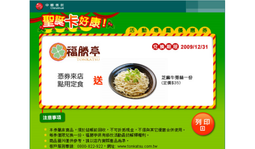 12/31前拿坡里、福勝亭、三商巧福的購餐優惠券