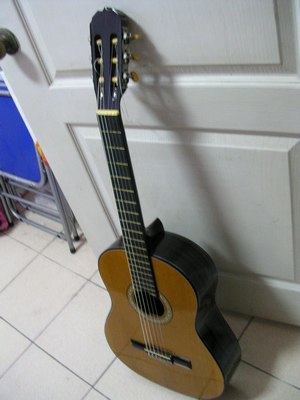 這堂真的會開始痛恨起我的古典吉他來,因為無論如何我的手指都無法張那麼大的壓到正確的位置,拇指已經都快抽筋了,還是放不到把上...然後因為新換了弦,超容易走音一堂課就要調音3次以上orz...