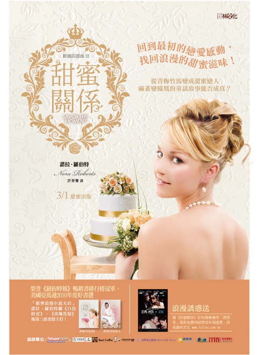 徵求一段甜蜜關係…… 「新娘四部曲」中的三部曲《甜蜜關係》,甫推出就登上《紐約時報》暢銷排行榜冠軍,本書將於三月出版中文版,充滿浪漫情懷的你,快來參加這場甜蜜饗宴吧!你曾經有過怎樣的甜蜜關係?是瞹眛、温暖、感動、快樂……,在情人節及白色情人節的前夕,徵求一段甜蜜關係,快來分享你的快樂和悲傷。