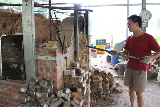 柴窯每次燒窯得花八、九天,得由他自己看火,且得對抗層出不窮的