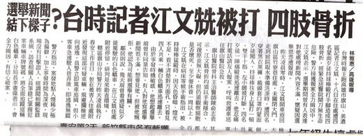 猜想記者生涯應該是很艱辛的道路,勇往直前衝鋒陷陣挖掘真相的同時,往往也給自己招來很多危險,「江文兟事件」不是空前,相信也不會是絕後。只希望以後少看到這類消息,畢竟每一新聞事件文字背後都是活生生有血有肉的一個人啊!