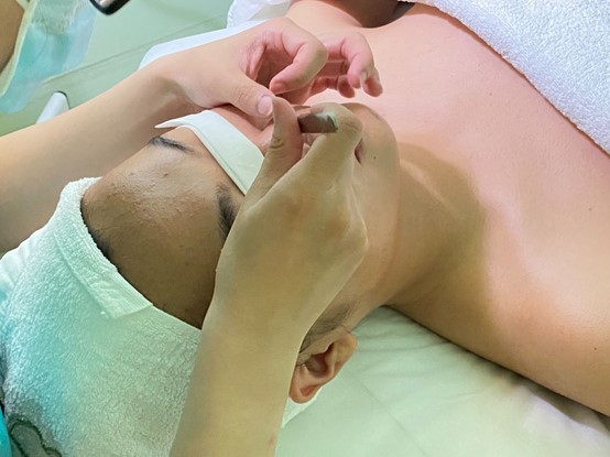 膚質檢測>>洗卸+按摩>>蒸氣>>清理粉刺>>鎮定>>保濕收斂>>上半身肩頸放鬆按摩
