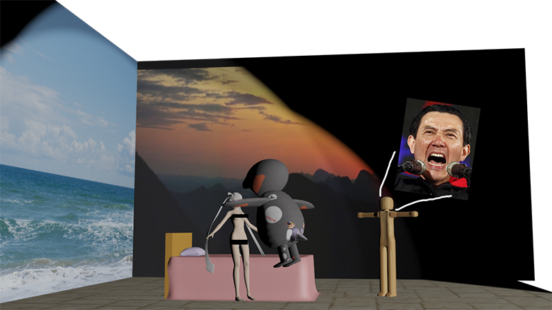 比方說包子正在Online game裡打魔王,場景是把魔王的裝備都打爆了,準備最後一擊,這時玩家馬英九上線,他買的是包研院2020年電視人造形,所以他的面部表情可以實時的投射在自己角色身上,概念圖: