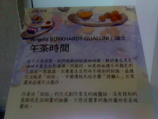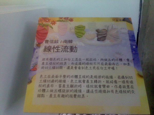 國際陶展裡還有很多很棒的作品,有些拍的不好,就不放上來了,反正這東西看照片總不如看現場的好,有興趣的朋友親自去看看吧,搭火車到鶯歌火車站,然後走一小段路就到了,免門票,而且全館冷氣開放,但帶著小孩的話,請注意不要造成館方的困擾。