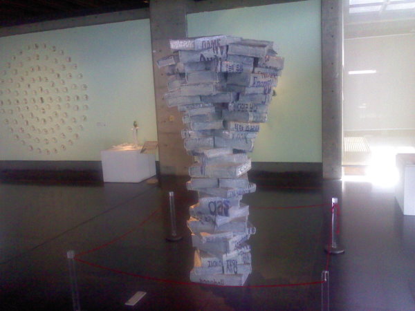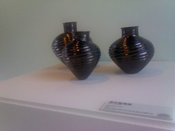 像龍捲風一樣的黑色陶器,現場看很有美感,用手機拍下的照片,只能說,看看樣子而已,向讀者道歉,館內不可以用閃光燈拍,而且我也只有爛手機可以照相而已。