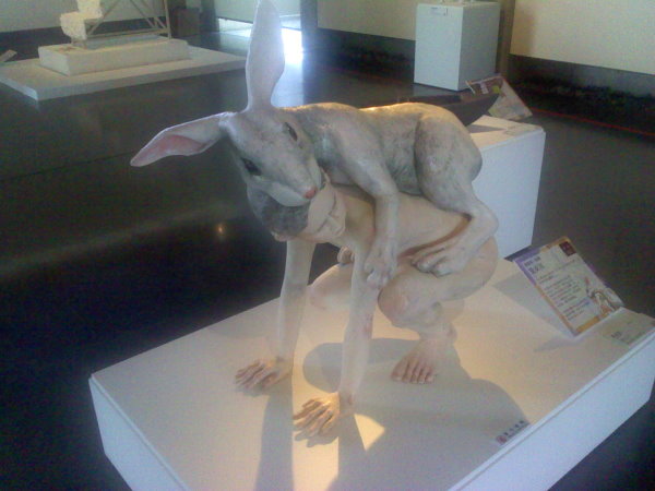 畫面挺大膽的,在展場裡一看見眼睛就被吸引了過去,全身赤裸的女孩,背上趴著一隻兔子,這究竟代表著什麼?不知道,也不想馬上知道答案。