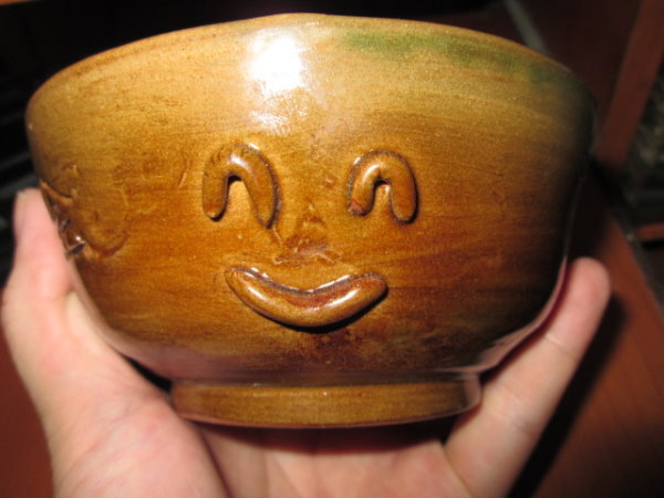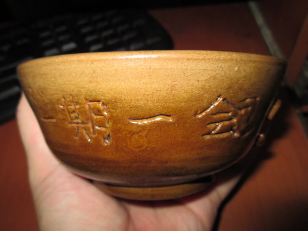 不知道是哪位損友,建議說碗裡要畫個$字符號,這樣以後混不下去,還可以拿著碗去接受社會愛心,那時覺得有道理,本著物盡其用的精神,拿竹籤在裡面刻了$,現在後悔了。