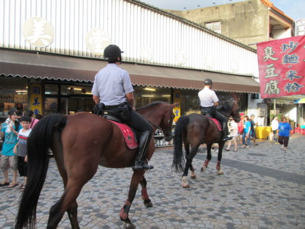 好像假日的午后都會在老街出沒,吸引人潮注意,是政府拼觀光的一種策略。效果如何?看照片就知道了,人馬所到之處都會有民眾圍觀或攔馬拍照。