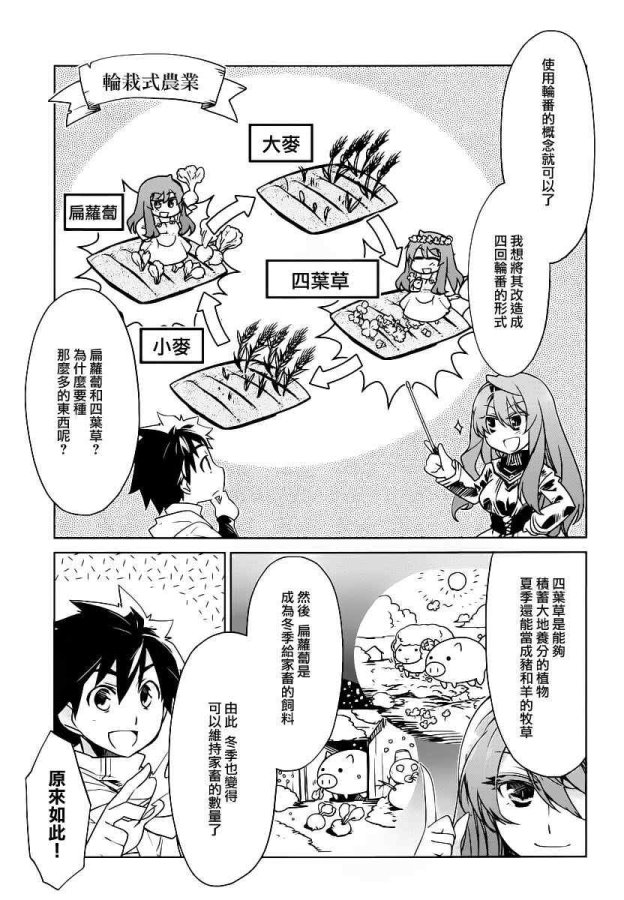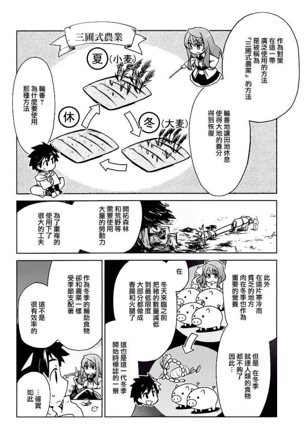 先省略掉政治及經濟觀點(書中對此著墨非常多,都不曉得作者是來寫小說的還是教經濟學?),魔王先帶著勇者到一個邊荒的小城鎮,實施農業計劃,計劃是希望改善貧窮農村的生活,將更新的農業技術推廣到整個人類社會,從而解決人類糧食不足的問題。