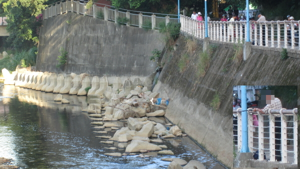 原本以為老人家是在釣魚,沒想到,是用魚鉤在鉤魚-.-,是餌用完了還是當作是手臂運動嗎?