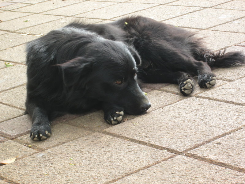小黑大概覺得自討了個沒趣,走來走去徘徊了一會後,回到原來位置,乖乖趴著讓我拍照。
