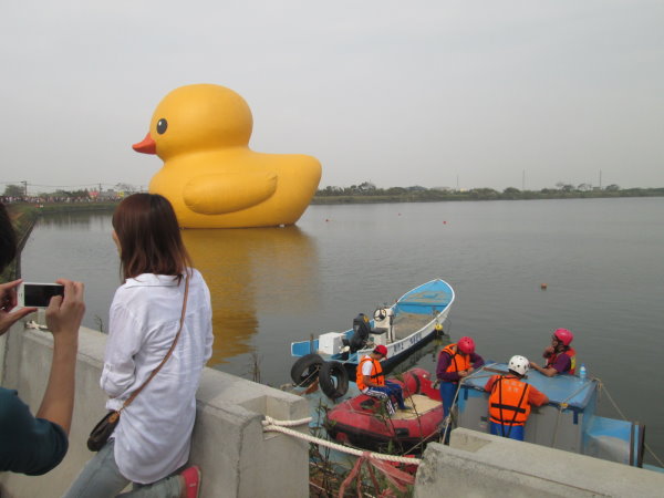 人們玩樂拍照時,底下還有人頂著太陽守在那邊戒護著。縣府縱始有護鴨不力之嫌,但至少在人身安全方面,他們盡了很大的努力,這不是最重要的嗎?(噫,等等,他們好像是鴨子充氣小組?)