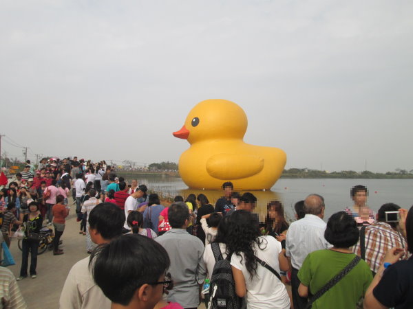 雖然桃園縣的鴨子展一路走來風波不斷,但其實看著大人帶小孩,兒子帶老父老母,男人帶女人,小孩帶小狗,形形色色的人來到這裡,拿起相機跟黃色小鴨合照時開心模樣,就覺得這樣可以了,暴掉一隻黃鴨就暴掉一隻黃鴨,反正可以跟陳菊借(笑)。