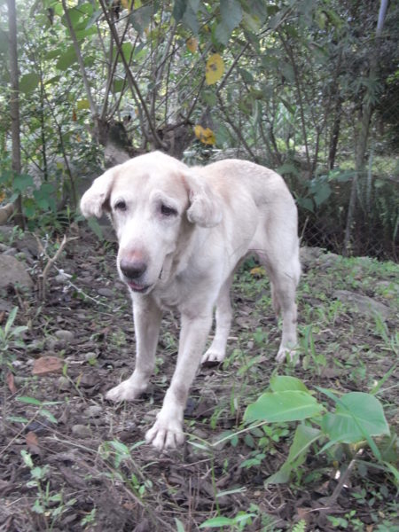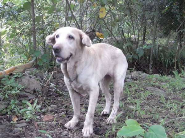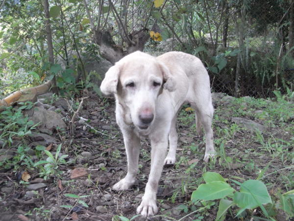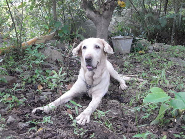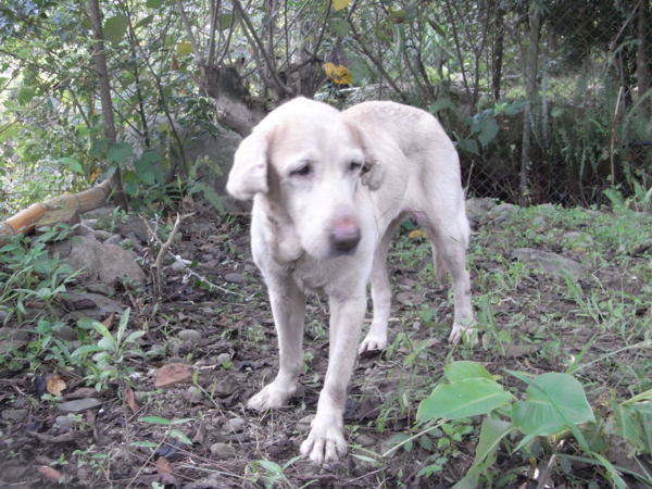她是妞妞,原先被禁錮豢養在鐵籠八年,長期踡臥以至於四肢不靈活,經常半夜嚎嘯社區很不安寧,被央求領養時一度猶豫再想反正都要成為動物的開心農場也就收養了,來山寨公社不到十天已經可以跟隨上山下河漸顯本色。