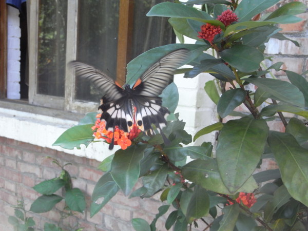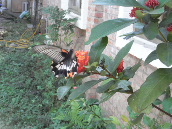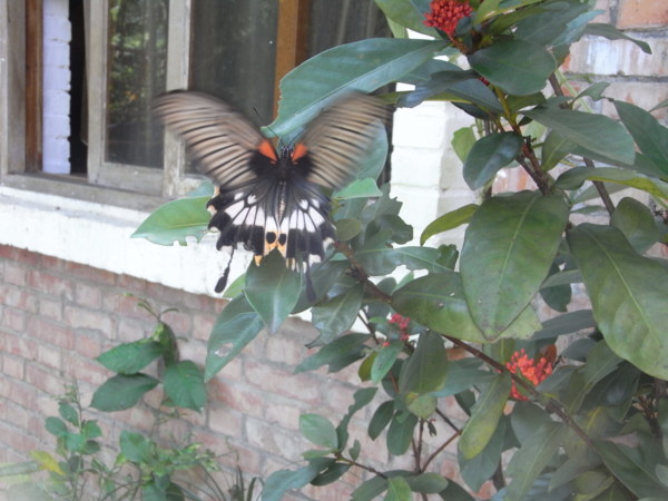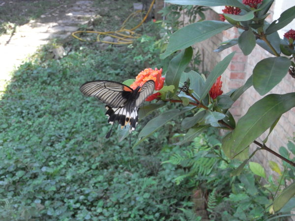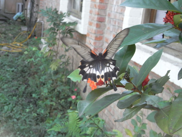 山寨公社周邊的飛鳥蜻蜓蝴蝶蜜蜂青蛙等生物太多品類,要一一辨識分別還真得請教專家,俺的相機不夠高檔攝影技術又不高明,只要能留下影像就滿足囉!類似這樣的蝶就有好幾款不同的色彩斑紋,東飛西舞取鏡很是費事!